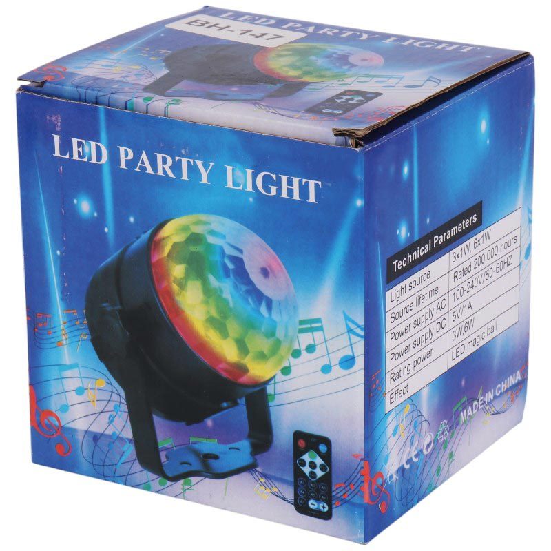 رقص نور گردان BH-147 + ریموت کنترل چراغ دیسکویی BH-147 همراه با ریموت کنترلدارای حالت نوردهی با افکت های نوری پیش فرض، دارای پایه با قابلیت تنظیم زاویه دارای ولتاژ ورودی 100 الی 240 ولت، فرکانس 50 الی 60 هرتز و توان خروجی 3 الی 6 واتساخته شده از پلاستیک با کیفیت، مقاوم در برابر فشار و ضربه احتمالی، مجهز به ریموت کنترل و سنسور حساس به صدا(آهنگ) نوع چراغ LED ثابت، با نوردهی چند رنگ RGB و رقص نور زیبا، مناسب برای تزئین اتاق کودک، اتاق خواب و ...تامین انرژی از طریق اتصال مستقیم دوشاخه متصل به برق شهری، دارای کابل به طول تقریبی 85 سانتی متر